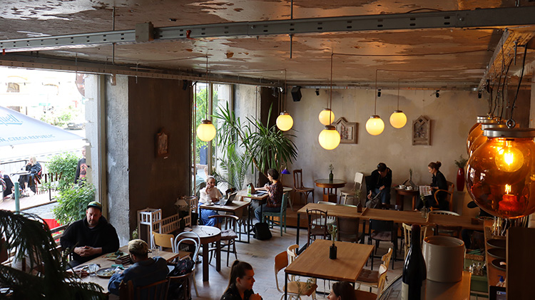 Az egyesületnek – hasonlóan a Bartókon galériát működtető bérlőknek – több lábon kellett állnia, ezért kávézót, borozót fogadott be. Az együtt élés nehezen alakult ki, több partner változott az évek folyamán, jelenleg az un. Mitzi névre hallgató vendéglátóhely működik a földszinten.