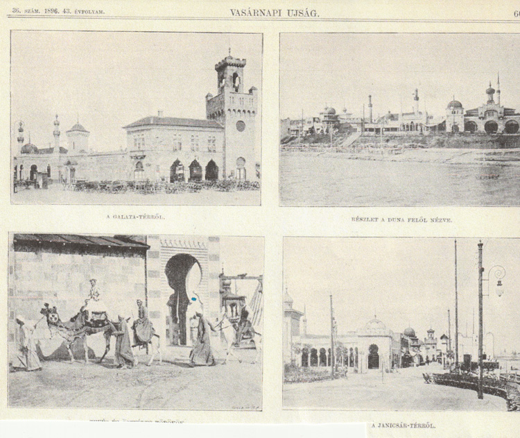 A tavon – a szigetet érintve fahíd vezetett a szárazfölre, melyről erős fényű villamos ívlámpák világították meg éjjel a vizet. Azt a tűzijátékot, amelyről kisasszonyunk ír a barátnőjének, a szigeten elhelyezett pirotechnikai eszközökből lőtte ki a világhírű James Pain, aki színes rakétáival már elkápráztatta Chicagó, London és Moszkva nagyközönségét is. Tovább haladva a sétálók a Sadullah cég Galata téri bazárjába értek, ahol eredeti szmirnai szőnyegek, díszes kelmék és borostyánkövekkel kirakott díszek kápráztatták el a nézelődőket. A következő pavilonban Mahmud szultán ezüst tábori ágyát mutatták be, a mellette futó Sztambul utcáján pedig a régi város zajos képe tárult fel. A korabeli újságok szerint a terület legszebb része a Janicsár tér volt, ahol török és olasz táncosok műsorokat, élőképeket mutattak be. Érdekessége volt még a térnek az olasz Lapíni testvérek carrarai szobor kiállítása, ahol vásárolni is lehetett. Élvezetes időtöltésnek bizonyult Sztambul utcája, a zenés csónakázás, és nem utolsó sorban az az úszó színpad, melyen Iris tündér történetét élvezhették egy adriai barlang festménye előtt. Látható, hogy milyen színes kavalkádot szervezett össze Somossy, akinél megfért a török az olasz és az igazi magyar cigánymuzsika Dankó Pistával az élen, csak hallgassa a publikum. A mulató tágas részei ünnepélyek megtartására is alkalmas volt, ezt használták ki augusztusban a Nemzeti Szalon festői. Megalkották a díszleteket, és színészek bevonásával előadták II. Rákóczi Ferenc ünnepélyes megérkezését Isztambulba. A mai Rákóczi hídmál, a terület végén állt Fascani színháza. Voltak még különféle szórakoztató helyszínek, fényképészműterem, kinematográfia, és hangulatos kávézók, melyek közül a legdíszesebb a Szultána kávézója volt. Magát az díszleteket a tervezők utasításai nyomán színházi díszletesek készítették el, amihez foghatót szabad téren eddig még nem látott a népes közönség.